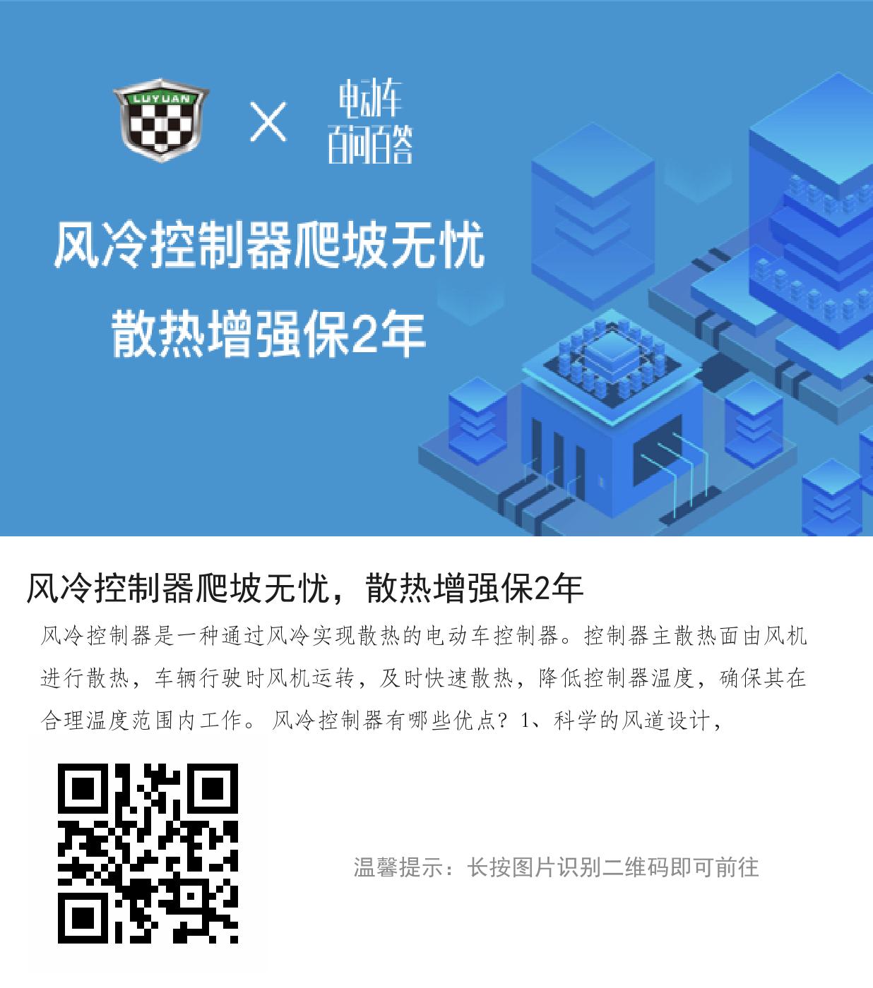 风冷控制器是一种通过风冷实现散热的电动车控制器。控制器主散热面由风机进行散热,车辆行驶时风机运转,及时快速散热,降低控制器温度,确保其在合理温度范围内工作。