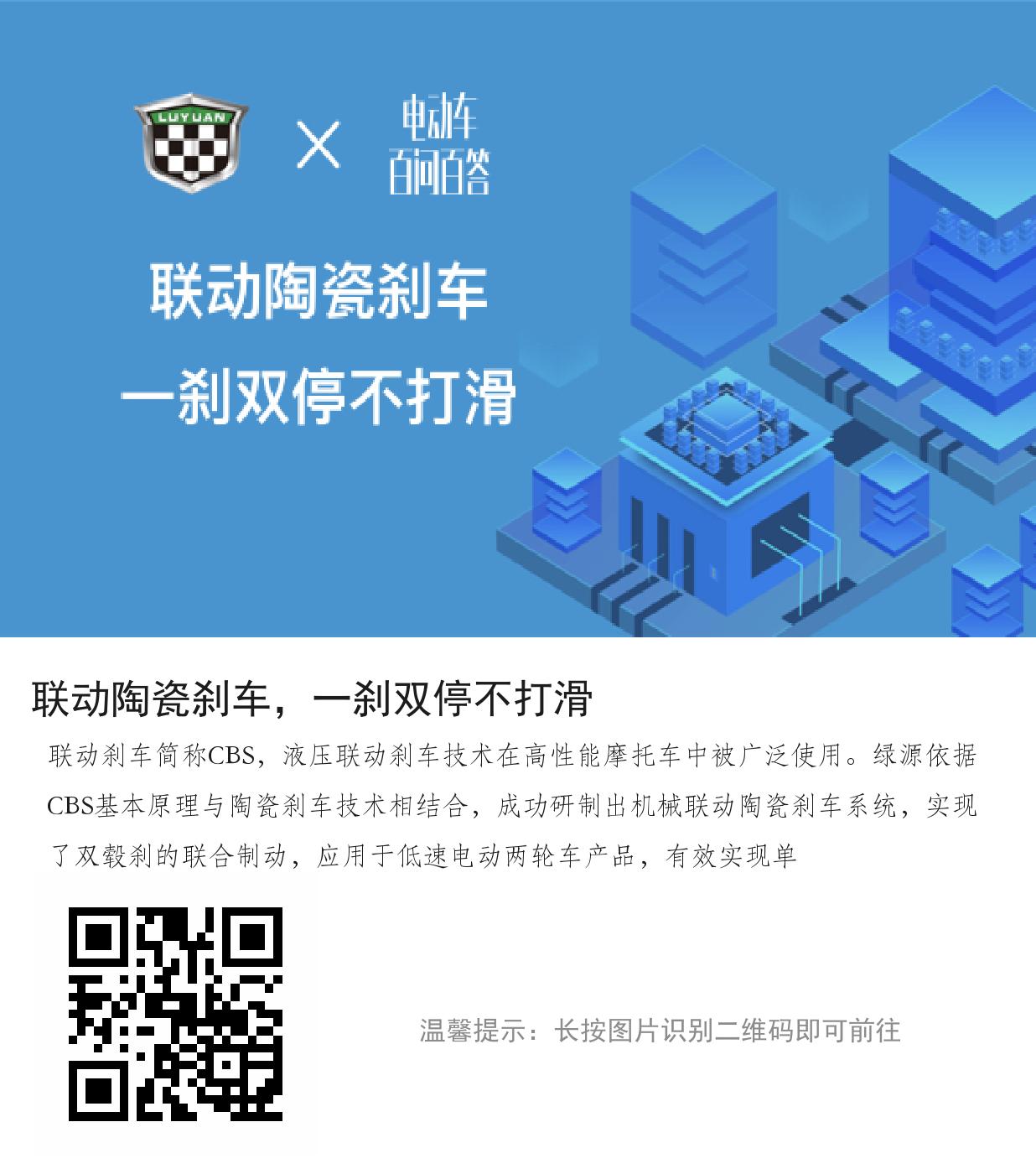 联动刹车简称CBS,液压联动刹车技术在高性能摩托车中被广泛使用。绿源依据CBS基本原理与陶瓷刹车技术相结合,成功研制出机械联动陶瓷刹车系统,实现了双毂刹的联合制动,应用于低速电动两轮车产品,有效实现单手刹车,前后轮同时均衡制动,被电动车爱好者形象地称之为“一刹双停”。